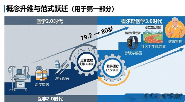 霍尔斯医学3.0:重塑医疗机构的价值与人文边界 如果说以对抗急性病为主的医学2.0时代,解决了如何让人免于早亡的问题;那么霍尔斯医学3.0则将视线全面前移。它不仅强调主动干预与全生命周期的健康维系,更要求医疗机构从疾病抢救站转型为健康生态守护者。